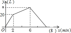 解答 解:(1)根据图象,每分钟进水20÷2=10L,