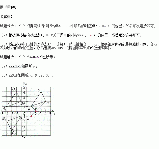(3)在x轴上求作一点P,使△PAB的周长最小,请画出△PAB,并直接写出P的坐标.