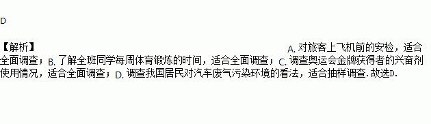 D. 调查我国居民对汽车废气污染环境的看法