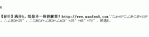 如图,将△ABC绕着点C顺时针旋转45°后得到△A′B′C.若∠A=45°.∠B′=110°,则∠BCA′的度数是( )