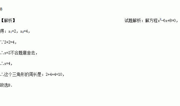 三角形的两边长为2和4,第三边长是方程x2﹣6x+8=0的根,则这个三角形的周长是( )