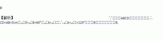 如图,在平行四边形ABCD中,∠B=60度,AB=5cm,则下面结论正确的是( )