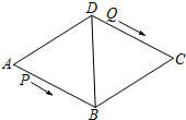 5.如图,菱形ABCD的边长为48cm,∠A=60°,动点P从点A出发,沿着线路AB-BD做匀速运动,动点Q从点D同时出发,沿着线路DC-CB-BA做匀速运动.