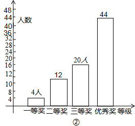 (2)先求出二等奖的人数及优秀的人数,补全统计图即可;