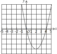 解答 解:(1)y=x2-4x=(x-2)2-4,则抛物线的对称轴为直线x=-2,顶点坐标为(2,-4),如图,(2)当0≤x≤4时,y≤0.(3)由图象可知,x2-4x=5的解为x1=-1,x2=5.
