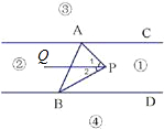 过点P作AC的平行线PQ,∠APB=∠1+∠2,