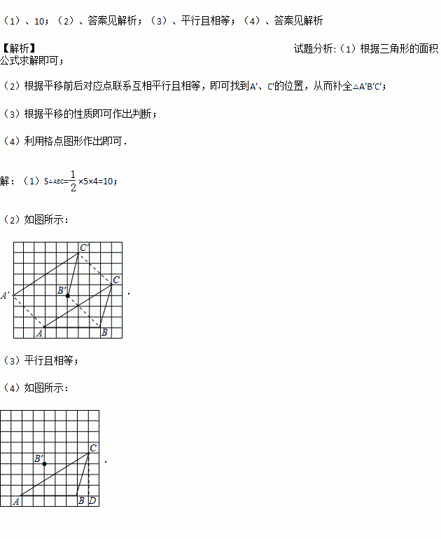 (2)将△ABC经过平移后得到△A′B′C′,图中标出了点B的对应点B′,补全△A′B′C′;
