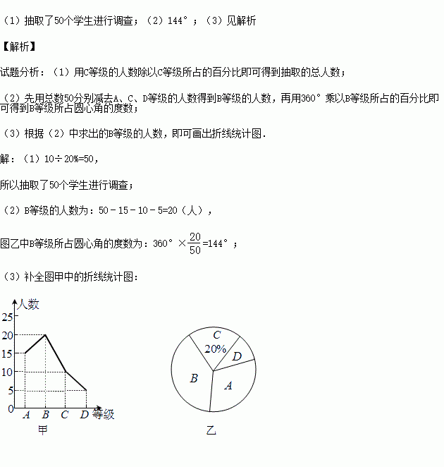 (2)分别求出B等级的人数和图乙中B等级所占圆心角的度数.