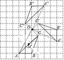 (2)利用网格特点和中心对称的性质画出点A、B、C的对应点A″、B″、C″,于是可得到△A″B″C″;
