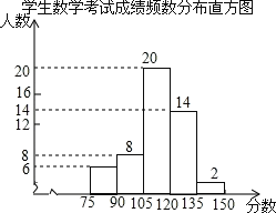 【题目】为了掌握某次数学模拟考试卷的命题质量与难度系数,命题教师选取一个水平相当的初三年级进行调研,命题教师将随机抽取的部分学生成绩分为5组:第一组75~90;第二组90~105;第三组105~120;第四组120~135;第五组135~150.统计后得到如图所示的频数分布直方图(每组含最小值不含最大值)和扇形统计图.观察图形的信息,回答下列问题:
