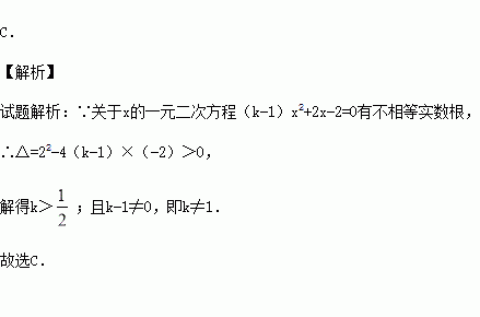 若关于x的一元二次方程(k-1)x2+2x-2=0有不相等实数根,则k的取值范围是( )