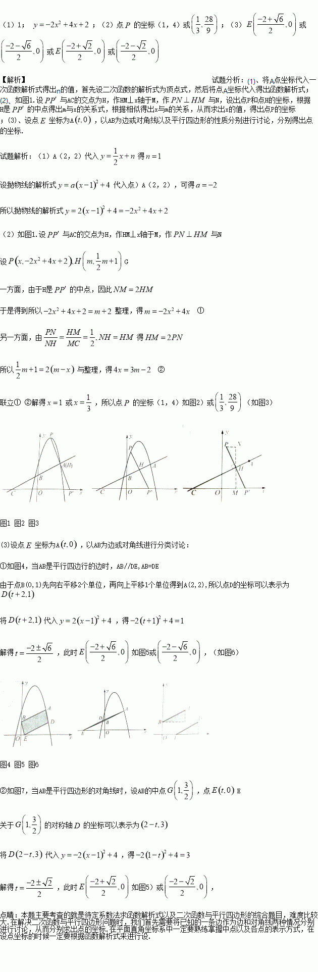 (2)P为抛物线上的点,点P关于直线AB的对称轴点在