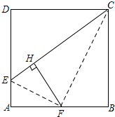 分析 (1)如图所示:连接EF,CF.设正方形的边长为4a,则AE=a,AF=BF=2a.由勾股定理得:EF=$\sqrt{5}a$,FC=2$\sqrt{5}$a,EC=5a.从而可证明△EFC是直角三角形,利用面积法可求得FH=2a,于是得到FH=FA;