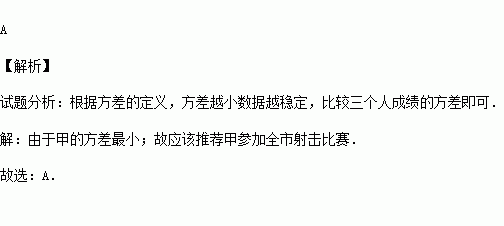 (2002•海南)某少年军校准备从甲,乙,丙,三位同学中选拔一人参加全市射击比赛,他们在选拔比赛中,射靶十次的平均环数是x甲=x乙=x丙=8.3,方差分别是S2甲=1.5,S2乙=2.8,S2丙=3.2.那么根据以上提供的信息,你认为应该推荐参加全市射击比赛的同学是( )