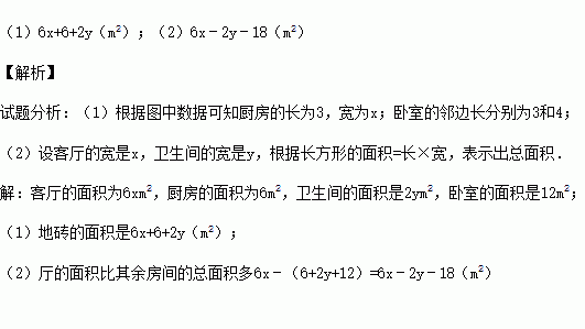 (2)求厅的面积比其余房间的总面积多多少平方米?
