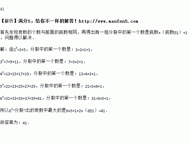 一个自然数的立方,可以分裂成若干个连续奇数的和。例如: