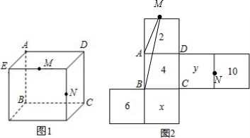 如图所示,图1为一个长方体,AD=AB=10,AE=6,图2为图1的表面展开图(数字和字母写在外表面上,字母也可以表示数),请根据要求回答问题: