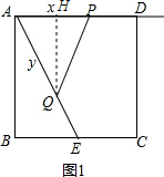 ∴$\frac{AQ}{AE}=\frac{QH}{AB}$,即$\frac{y}{\sqrt{5}}$=$\frac{QH}{2}$,