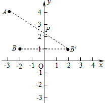 分析:作点关于y轴的对称点B′,连接AB′交y轴与点P,则点P即为所求点,用待定系数法求出过点AB′的直线解析式,再令x=0即可求出P点坐标.