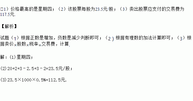 (3)若张先生在本周的星期五以收盘价将全部股票卖出,求卖出股票应支付的交易费.