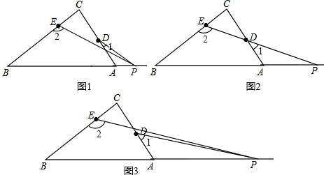 分析:(1)连接PC,根据三角形的一个外角等于与它不相邻的两个内角的和可得∠1=∠PCD+∠CPD,∠2=∠PCE+∠CPE,再表示出∠1+∠2即可;