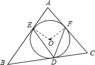 精英家教网如图,⊙O内切于△ABC,切点分别为D、E、F,若∠B=40°,∠C=60°,则∠EDF的大小为