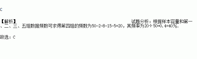 已知在一个样本中,50个数据分别落在5个组内,第一、二、三、五组数据频数分别为2、8、15、5,则第四组数据的频数和频率分别为( )