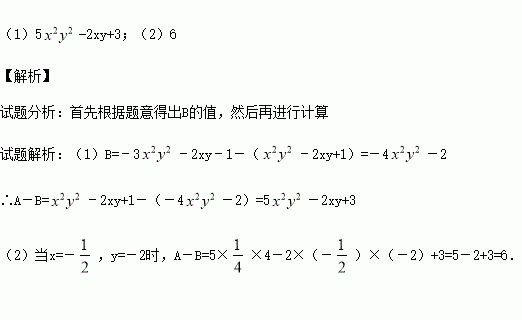 ﹣2xy+1,小明在计算A﹣B时,由于粗心把A﹣B看成了A+B求得结果为﹣3