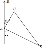 如图,甲、乙两船从港口A同时出发,甲船以16海里/小时的速度向北偏东35°航行,乙船向南偏东55°航行,2小时后,甲船到达C岛,乙船到达B岛;若C、B两岛相距48海里,问乙船的航速是每小时多少海里?