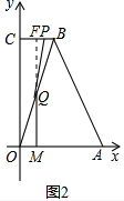 分析 (1)如图1,过点B作BE⊥OA于点E,则可得AE=BE,从而可得∠OAB,求出直线OB的解析式,将t=0.5代入可得QM;