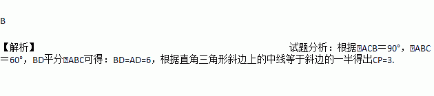 如图,在△ABC中,∠ACB=90°,∠ABC=60°,BD平分∠ABC,P点是BD的中点,若AD=6,则CP的长为( )
