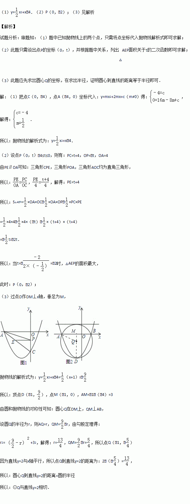 (3)点D为该抛物线的顶点,⊙Q为△ABD的外接圆,求证⊙Q与直线y=2相切.