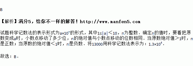 A. 0.13×105 B. 1.3×104 C. 1.3×105 D. 13×103