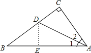 10.如图,∠C=90°,∠1=∠2,若BC=9,BD=5,则D到AB的距离为4.