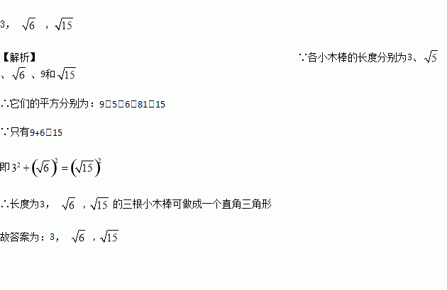 cm的小木棒各一根,小林要从中选去三根做成一个直角三角形,则小林选出的三根木棒长分别是___________.