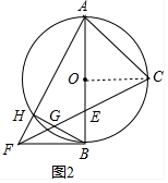 分析 (1)如图1中,连接OC.先证明△COE≌△FBE,推出∠BFE=∠BAF,由OC∥BF,推出∠BFE=∠OCE,再由∠FCA=45°+∠OCE,∠FAC=45°+∠FAB,即可证明∠FAC=∠FCB解决问题.