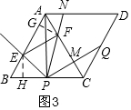 £¨3£©×÷¸¨ÖúÏߣ¬¹¹½¨¸ßÏߣ¬ÉèBE=x£¬ÏÈÖ¤Ã÷¡÷BEP¡×¡÷CPF£¬ÇóFC¡¢BE¡¢AEºÍAFµÄ³¤£¬¸ù¾ÝÌØÊâ½ÇµÄÈý½Çº¯ÊýÖµÇó¸ßÏßGF¡¢EHµÄ³¤£¬Ö¤Ã÷PQÓëFC´¹Ö±£¬ÀûÓÃÃæ»ý²îÇóS¡÷EPFµÄÃæ»ý£®