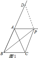 解答 (1)证明:在BA延长线上截取AD=AC,连接DP,如图1所示:![]()