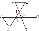 ∠A+∠B+∠C+∠D+∠E+∠F=(∠A+∠B)+(∠C+∠D)+(∠E+∠F)=∠1+∠2+∠3=360°.