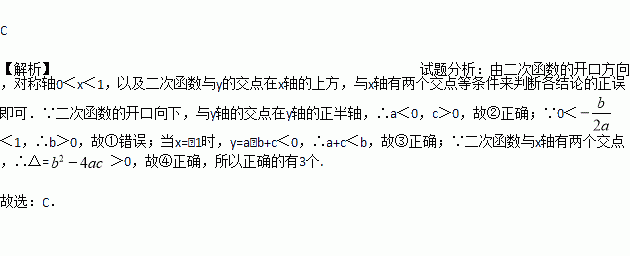 (a≠0)的图象如图所示,下列结论:①b<0;②c>0;③a+c<b;④