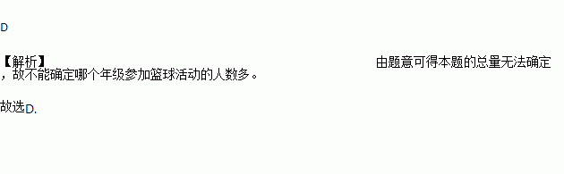 如图,是大丰区某校七、八两个年级男生参加课外活动人数的扇形统计图.根据统计图,下面对两个年级参加篮球活动的人数判断正确的是 ( )