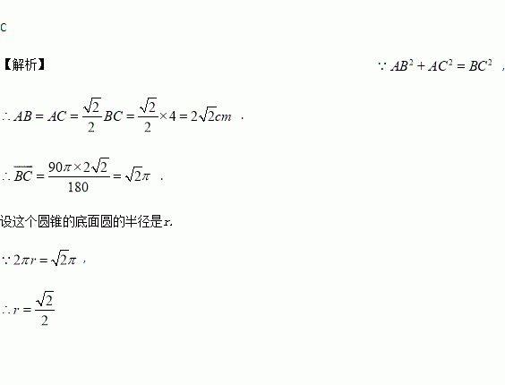 如图,从一块直径为4cm的圆形纸片上剪出一个圆心角为90°的扇形ABC,使点A,B,C在圆周上,将剪下的扇形作为一个圆锥的侧面,则这个圆锥的底面圆的半径是( )