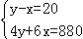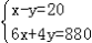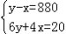 甲、乙两地相距880千米,小轿车从甲地出发2小时后,大客车从乙地出发相向而行,又经过4小时两车相遇.已知小轿车比大客车每小时多行20千米.设大客车每小时行x千米,小轿车每小时行y千米,则可列方程组为( )