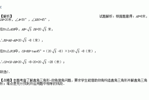 的仰角为30°,然后他正对塔的方向前进了8米到达地面的