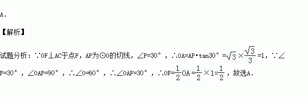 如图,AC是⊙O的弦,OF⊥AC于点F,延长OF,与过点A的切线交于点P,若∠P=30°,AP=