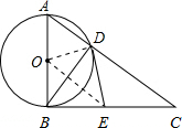 (2)连接OD,OE,利用直角三角形斜边上的中线等于斜边的一半得到DE=BE,利用SSS得到三角形OBE与三角形ODE全等,利用全等三角形的对应角相等得到∠ODE为直角,即可得证.