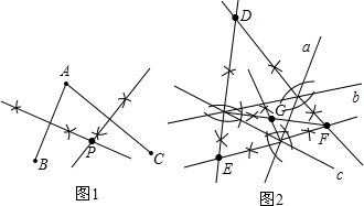 (2)如图2,有a、b、c三条公路,先要建一个货物中转站到三条公路的距离相等,请作图找到货物中转站的位置.