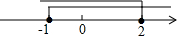 | A. | $\left\{\begin{array}{l}{x>-1}\\{x≤2}\end{array}\right.$ | B. | $\left\{\begin{array}{l}{x≥-1}\\{x<2}\end{array}\right.$ | C. | $\left\{\begin{array}{l}{x≥-1}\\{x≤2}\end{array}\right.$ | D. | $\left\{\begin{array}{l}{x<-1}\\{x≥2}\end{array}\right.$ |