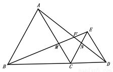 如图,B、C、D在同一直线上,△ABC和△DCE都是等边三角形,且在直线BD的同侧,BE交AD于F,BE交AC于M,AD交CE于N。