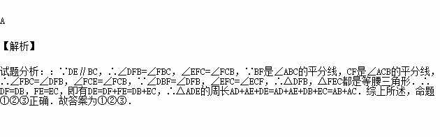 如图,△ABC中,∠ABC与∠ACB的平分线交于点F,过点F作DE∥BC交AB于点D,交AC于点E,那么下列结论: